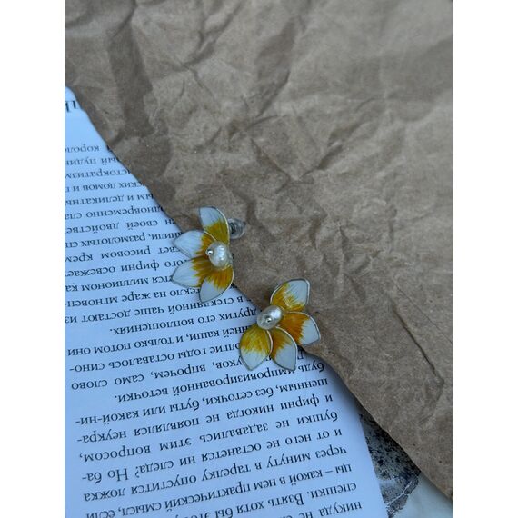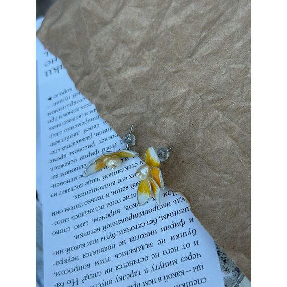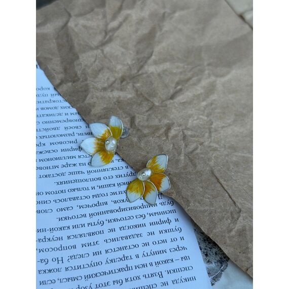 Aysu — zərif çiçək formasında hazırlanmış incə sırğalardır. Hər bir çiçək beş ləçəkdən ibarətdir; ləçəklər yumşaq ağ–sarı qradientlə boyanıb: əsas hissədə parlaq sarı ton başlayır və ləçəklərin uclarına doğru südlü-ağ çalara keçir. Çiçəyin mərkəzində yerləşən səliqəli mirvari bəzəyə klassik və incə eleqantlıq qatır.