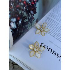 Miel — zərif və romantik dizayna malik çiçək formalı sırğalardır. Hər bir sırğa beş ləçəkli çiçək formasında hazırlanıb. Ləçəklər yarı şəffaf çəhrayı rəngdədir, yüngül mirvari parıltısına malikdir və incə qızılı haşiyə ilə vurğulanıb. Çiçəyin mərkəzində yerləşən açıq pastel tonlu mat...